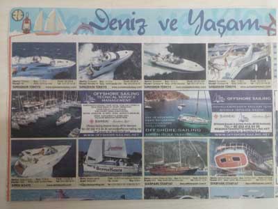 Posta gazetesi seri ilan sayfalarında 2007 yılında başlattığımız projemiz; deniz tutkunları için, bir rehber görevi görmüştür. Yat ve tekne firmalarının reklamlarını Posta gazetesinde bir araya getiren projemiz 4 yıl boyunca yoğun ilgi görmüştür.