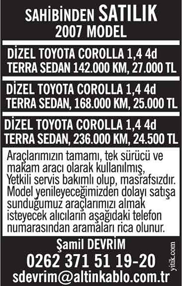 Posta Gazetesi Vasıta İlanı Örnekleri